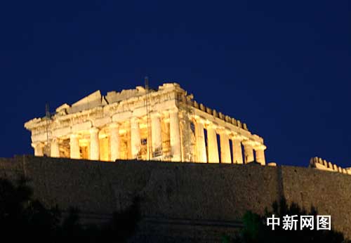 帕特農(nóng)神廟亮燈迎接奧運圣火