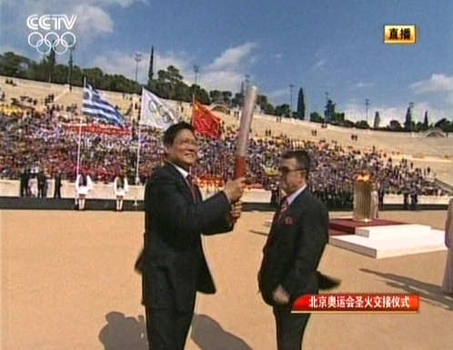 中新網(wǎng)雅典3月30日電 北京奧運(yùn)會(huì)圣火交接儀式在希臘當(dāng)?shù)貢r(shí)間15時(shí)(北京時(shí)間20時(shí))在泛雅典體育場(chǎng)舉行。在交接儀式上,北京奧組委主席劉淇從希臘奧委會(huì)主席基里亞庫(kù)手中接過奧運(yùn)會(huì)圣火,并點(diǎn)燃了火種燈。北京奧運(yùn)會(huì)火種燈隨即將登上專機(jī)回國(guó),并將于31日上午在北京舉行歡迎儀式。