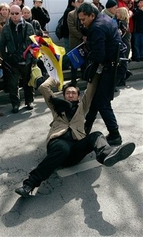 據(jù)悉,法國警方已經(jīng)逮捕了至少四名企圖干擾火炬?zhèn)鬟f的搗亂分子。