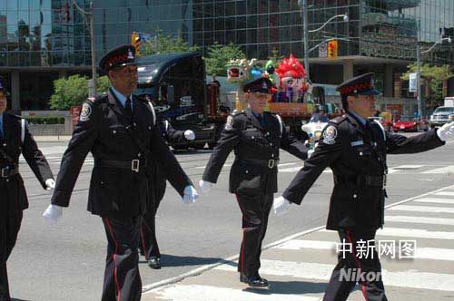龍舟節(jié)花車巡游在中國傳統(tǒng)的舞龍帶領(lǐng)下,從多倫多市區(qū)出發(fā),由多倫多警察開道護航,穿過多倫多士巴丹那大道、唐人街、學院路、大學街等主要繁華街道,經(jīng)過多倫多大學、安大略省議會大廈、政府大樓,最后抵達女王公園,行程近5公里。北京奧運主題的花車巡游給多倫多市民們帶來了一份特別的驚喜和祝福。奧運福娃和龍舟所經(jīng)之處,受到街道兩旁多倫多市民的熱烈歡迎,大家紛紛與之合影留念,并向游行隊伍歡呼致意。