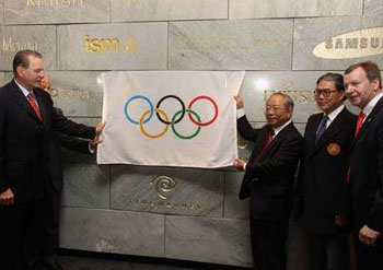 洛桑當(dāng)?shù)貢r(shí)間3日上午11時(shí)半,國(guó)際奧委會(huì)奧林匹克博物館在其捐獻(xiàn)者留名墻前,舉行石匾揭幕儀式,以表彰香港賽馬會(huì)捐助100萬(wàn)美元,這也是繼中國(guó)石化、中國(guó)寶鋼、中國(guó)銀行和愛(ài)國(guó)者之后,第五塊鑲嵌在留名墻上的中國(guó)贊助商。