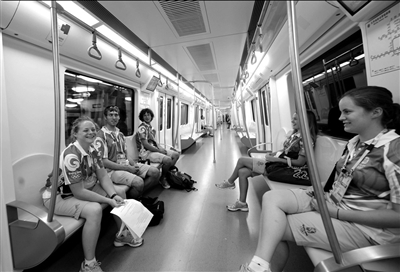 昨天,來自美國的志愿者乘坐奧運(yùn)支線返回住處。