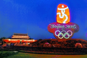 以“中國印·舞動的北京”為主景的天安門廣場中心花壇,用祥云圖案為襯托,在主景周圍形成圓形花壇,并在花壇外圍布置低噴泉和迷霧裝置,烘托奧運(yùn)會歡樂祥和的氣氛。其中“中國印”為LED光源燈箱,可以旋轉(zhuǎn),主景底座高2.9米,頂高16.9米,花壇直徑為40米。