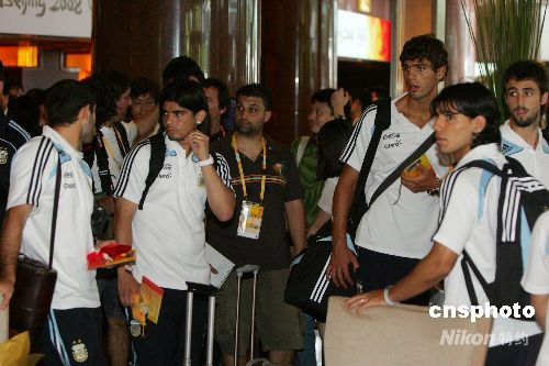 7月31日,阿根廷國奧隊(duì)抵達(dá)上海,備戰(zhàn)將于8月7日開始的北京奧運(yùn)會足球上海賽區(qū)比賽。作為衛(wèi)冕冠軍,阿根廷隊(duì)將在上海賽區(qū)揭幕戰(zhàn)中對陣科特迪瓦隊(duì)。圖為阿根廷球員抵達(dá)上海華亭賓館。 中新社發(fā) 湯彥俊 攝