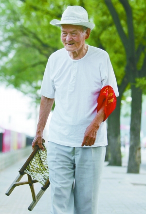 103歲的付漪泉老人每天上街巡邏。 本報記者 韓萌 攝