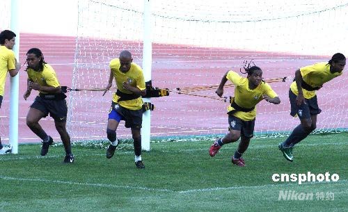 8月3日下午,巴西男足奧運會賽前在沈陽訓練爆發(fā)力。當日下午,2日抵達沈陽的巴西男足在鐵西體育場進行奧運會前的首次訓練。 中新社發(fā) 張宇 攝
