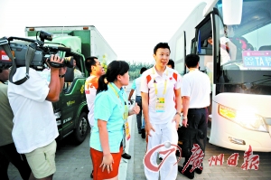 第一個走下車的是陳忠和,他立刻被媒體團團包圍。隨后下車的姑娘們個個笑顏如花,1.97米的趙蕊蕊鶴立雞群,無疑成為最受關注的隊員。趙蕊蕊一下車就主動和前來接待的北京奧組委工作人員一一打招呼,看到其他隊友在一旁留影,她又趕緊跑過去“搶鏡”。同樣,馮坤、楊昊、周蘇紅等老將也都難以抑制興奮的心情,大家一邊有說有笑地向安檢口走去,一邊抓緊時間左顧右盼,希望趁著天色還沒完全黑下來,好好看看奧運村的樣子。第一次進奧運村的天津籍年輕二傳魏秋月相當興奮,她一下車,就覺得什么都充滿新鮮感!芭芜@天好久了,當然要照張相留個紀念!弊詈箨P頭入選12人大名單的自由人張娜笑著說!澳冉悖搅死镞吥憧梢I我們轉(zhuǎn)轉(zhuǎn)啊!蔽呵镌潞屠罹暌贿呉粋圍住張娜,還催促著,“快走快走,要不里邊的店就該關門了!