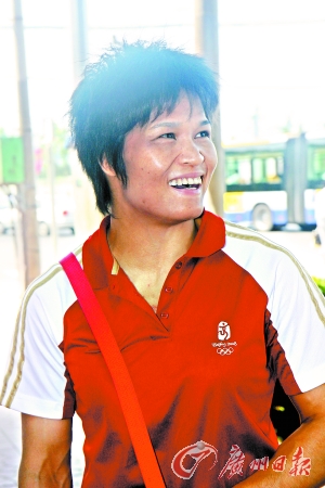 離北京奧運(yùn)會開賽還剩下不到一個星期,中國代表團(tuán)所有運(yùn)動健兒均進(jìn)入了最后的備戰(zhàn)階段,要在這個時候“逮”到?jīng)_金選手并進(jìn)行采訪談何容易?不過,記者就在今天偶然得到了這一良機(jī)。大約在中午12時左右,記者正與兩名同行一起走在奧林匹克體育中心東門的馬路邊,迎面而來的是穿著紅色運(yùn)動服的兩位女士!斑@不是冼東妹嗎?”記者曾經(jīng)于2004年冼東妹在雅典奪冠的前夜,特地到她位于廣州體院的家里進(jìn)行過采訪,對這位憨厚的廣東女子留下了深刻的印象。冼東妹也認(rèn)出了記者,笑容滿面地打了個招呼。