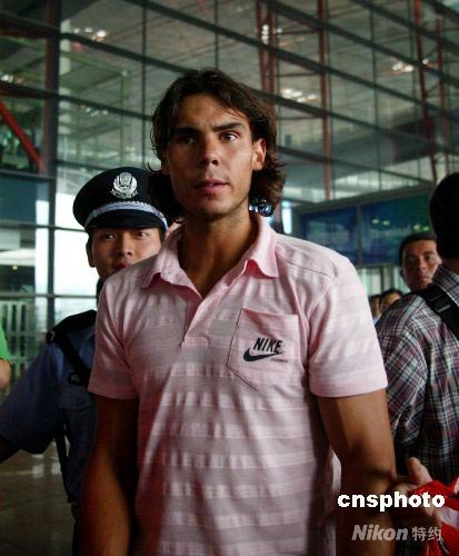 8月4日,有著“紅土之王”稱(chēng)號(hào)的西班牙網(wǎng)球名將納達(dá)爾抵京,開(kāi)始北京奧運(yùn)會(huì)征程。中新社發(fā) 富田 攝