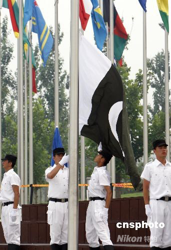 8月4日,巴基斯坦奧運代表團在北京奧運村舉行升旗儀式。 中新社發(fā) 杜洋 攝