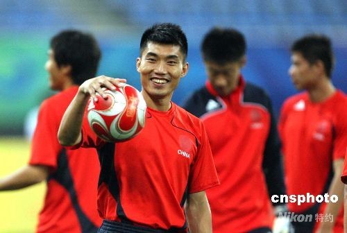 8月5日晚,中國男足在沈陽奧林匹克中心進(jìn)行適應(yīng)場地訓(xùn)練,主力隊(duì)員鄭智在訓(xùn)練中。中新社發(fā) 張宇 攝