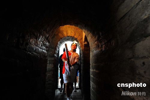 圖:奧運(yùn)圣火穿越萬里長(zhǎng)城烽火臺(tái)