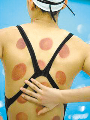 8月4日,中國(guó)游泳隊(duì)在“水立方”進(jìn)行奧運(yùn)前的熱身訓(xùn)練,蛙泳小將王群成為眾多國(guó)外攝影師拍攝的焦點(diǎn),吸引鏡頭的不是她的高科技泳衣,也不是她美麗的身材,而是整整一個(gè)后背的“火罐印”。