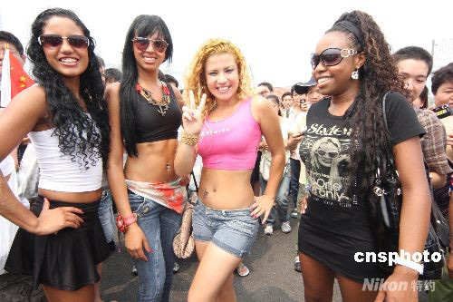 8月8日中午,距離北京奧運(yùn)會(huì)開幕不到8個(gè)小時(shí),幾位來自巴西的美女觀眾,在“鳥巢”旁跳起奔放熱烈的桑巴舞為中國(guó)奧運(yùn)加油,迎接奧運(yùn)開幕式的到來。 中新社發(fā) 吳芒子 攝