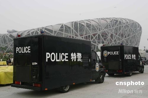 圖:北京奧運即將揭幕 特警車輛場外戒備