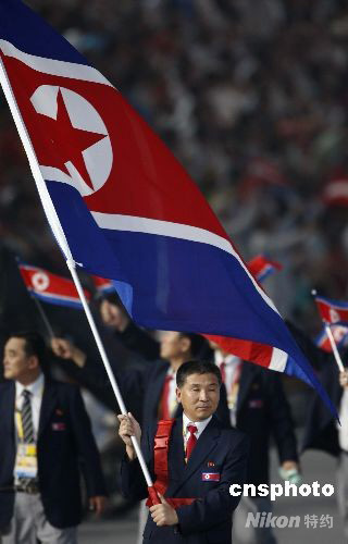 圖:朝鮮奧運(yùn)代表團(tuán)旗手