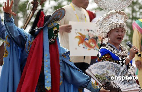 8月9日,大型文化展示活動《中國故事》在北京奧林匹克公園公共區(qū)正式開幕,中國各個地區(qū)的民俗演出精彩登場。中新社發(fā) 王東明 攝