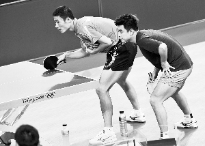 昨天下午,國(guó)乒男隊(duì)訓(xùn)練了近兩個(gè)小時(shí),比原定計(jì)劃多了差不多一小時(shí)———當(dāng)然這不是照顧東道主,而是國(guó)乒隊(duì)的運(yùn)氣不錯(cuò)!拔覀兒苄疫\(yùn)。下午3點(diǎn)我們正要離開時(shí),發(fā)現(xiàn)有一張空球桌,還可以再訓(xùn)練一小時(shí),所以我們又練了45分鐘。我們練習(xí)了發(fā)球和多回合作戰(zhàn),盡量更適應(yīng)球速和空調(diào)風(fēng)。運(yùn)動(dòng)員在賽場(chǎng)上精力一般比較集中。我們不進(jìn)行任何針對(duì)性練習(xí),只是保證他們狀態(tài)良好和動(dòng)作流暢!(孫海光)