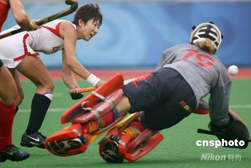 8月10日,中國女曲在奧運(yùn)會女子曲棍球小組賽首場比賽中以3:0戰(zhàn)勝西班牙隊(duì)。圖為中國隊(duì)在進(jìn)攻中。 中新社發(fā) 武仲林 攝