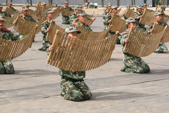 “我們前四個八拍動作取名為“禮之用,和為貴”,一開場就要把古代文人的氣質淋漓盡致地刻畫出來,要高傲,要自然,要放松,所有軍人姿態(tài)都要改過來……”第一天,導演們的一串“連環(huán)炮”就讓激情昂揚的參演官兵傻了眼。