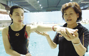 從那時起,郭晶晶開始理解了這位教練。郭晶晶回憶,“她那次只獲得四銀(郭和胡佳每人各獲得兩銀),但她沒把表情寫在臉上,依然如此敬業(yè)!痹谔^,鐘少珍是少有幾位站著指導(dǎo)隊(duì)員的教練員,而在郭晶晶受傷的日子里,鐘更是給了她無微不至的關(guān)懷。雅典奧運(yùn)會后,郭晶晶享受了風(fēng)光,也經(jīng)受了挫折,鐘少珍這時成了最堅(jiān)定的支持者,她甚至對著記者大喊大叫!敖叹殞ξ艺f,跟自己生氣就等于拿別人的錯誤懲罰自己。有些事外人不了解就算了,我也不解釋什么,只要教練和隊(duì)里理解我,就夠了!” 朱蔚晴