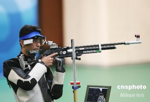 8月11日,印度選手賓德拉以700.5環(huán)奪得北京奧運會男子10米氣步槍金牌。這也是印度獲得的第一枚奧運會個人項目金牌。中新社發(fā) 武仲林 攝