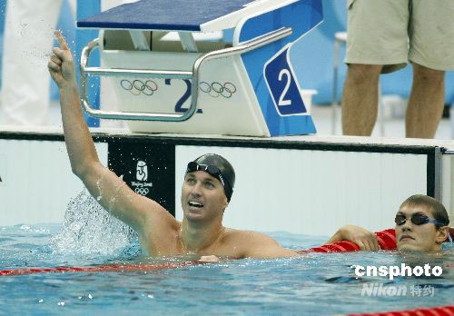 8月12日,北京奧運(yùn)會(huì)男子100米仰泳決賽,美國(guó)選手佩爾索爾以52秒54的成績(jī)打破今年7月由他自己創(chuàng)造的52秒89的世界紀(jì)錄,獲得金牌。中新社發(fā) 杜洋 攝