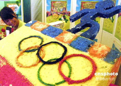 北京奧運會期間,香港著名的維園舉行的“香港奧運文化廣場”活動每天都吸引大量的中外游客及香港民眾前來觀賞奧運比賽直播和參與各種活動。圖為由香港學生用廢棄的材料制作的各種奧運的系列作品。中新社發(fā) 張勤 攝
