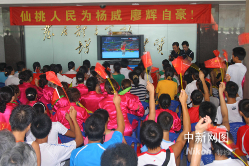 8月12日,楊威率領(lǐng)中國體操男隊(duì)奪得奧運(yùn)會(huì)團(tuán)體金牌。當(dāng)日中午時(shí)分,當(dāng)消息傳到楊威家鄉(xiāng)中國體操之鄉(xiāng)湖北仙桃市,早早守侯在電視機(jī)前的當(dāng)?shù)毓賳T、民眾一片沸騰,人們敲鑼打鼓、齊鳴鞭炮,熱烈慶賀仙桃籍運(yùn)動(dòng)員楊威再次獲得奧運(yùn)會(huì)體操男團(tuán)冠軍。