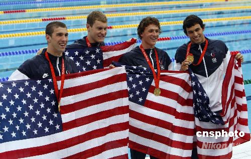 圖:美國隊(duì)摘得男子4x200米自由泳接力金牌