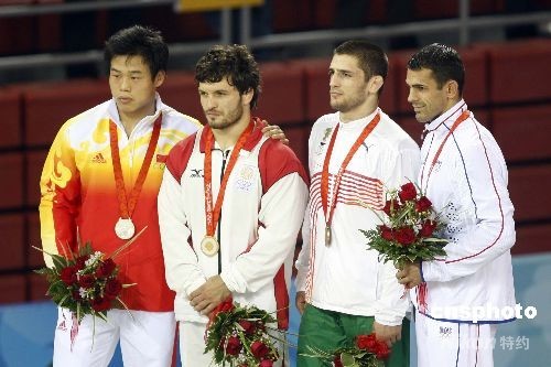 8月13日,在北京奧運(yùn)會(huì)摔跤男子古典式74公斤級(jí)冠亞軍決賽中,格魯吉亞選手馬努恰爾·克維克利亞以2-0戰(zhàn)勝中國(guó)選手常永祥,獲得男子古典式74公斤級(jí)金牌,常永祥獲得銀牌。保加利亞選手亞沃爾·亞娜基耶夫與法國(guó)選手克里斯托夫·蓋諾并列獲銅牌。中國(guó)選手常永祥獲得這枚銀牌的同時(shí),也創(chuàng)造了中國(guó)男子摔跤隊(duì)在奧運(yùn)會(huì)比賽的最佳成績(jī)。在此之前,中國(guó)男子摔跤隊(duì)在奧運(yùn)會(huì)上的最佳成績(jī)是第三名。中新社發(fā) 盛佳鵬 攝