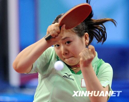 8月14日,在北京奧運(yùn)會(huì)乒乓球女子團(tuán)體項(xiàng)目小組賽第二輪比賽中,日本隊(duì)經(jīng)過艱難苦戰(zhàn)以3比2戰(zhàn)勝西班牙隊(duì)。日本隊(duì)主力球員福原愛兩次上場,一勝一負(fù)。新華社記者徐家軍攝