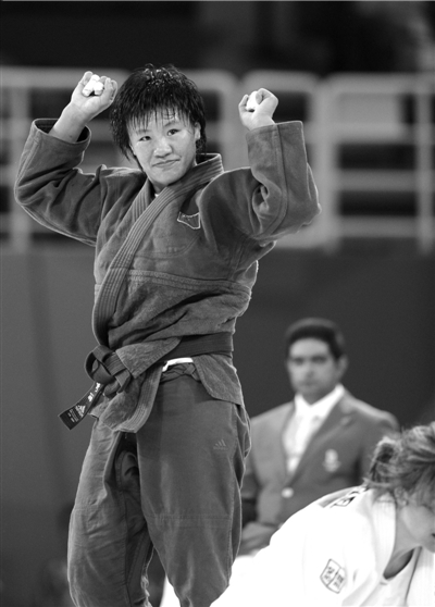 當(dāng)3名場(chǎng)上裁判同時(shí)舉起藍(lán)旗時(shí),中國(guó)女子柔道又多了一位奧運(yùn)會(huì)冠軍。經(jīng)歷過(guò)最后加時(shí)賽的楊秀麗右側(cè)面頰烏青,疲憊地站在場(chǎng)上,在裁判舉旗的那一刻她興奮地?fù)]了揮手。0:0的比分,一邊倒的判決,與其說(shuō)她贏在競(jìng)技上不如說(shuō)她贏在堅(jiān)韌、積極的比賽精神上。