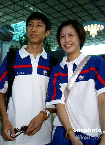 圖為雅典奧運(yùn)冠軍朱木炎及其女友楊淑君行前在桃園機(jī)場(chǎng)。