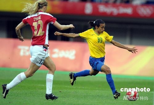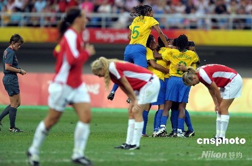 8月15日,奧運(yùn)女足四分之一決賽在天津奧體中心水滴體育場(chǎng)舉行,巴西隊(duì)2-1擊敗挪威,率先進(jìn)入半決賽。本場(chǎng)比賽,巴西隊(duì)由達(dá)妮埃拉和瑪塔先入兩球,挪威隊(duì)則由西麗·努爾比通過點(diǎn)球扳回一分,但最終無(wú)力挽回?cái)【帧?