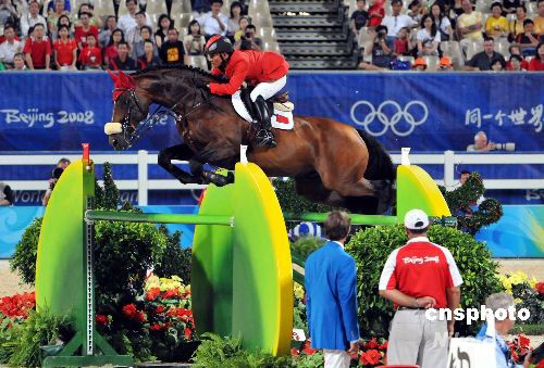八月十五日晚,奧運(yùn)馬術(shù)在香港沙田舉行場地障礙個(gè)人賽及團(tuán)體賽的第一輪資格賽。中國選手李振強(qiáng)與坐騎“長安金伯樂”奧運(yùn)馬術(shù)場地障礙賽上登場,F(xiàn)年四十歲來自廣東東莞的李振強(qiáng),是首位參加奧運(yùn)馬術(shù)障礙賽的中國人。中新社發(fā) 鄧慶樂 攝