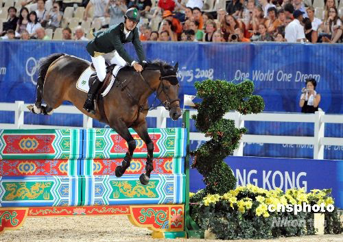 八月十五日晚,奧運(yùn)馬術(shù)在香港沙田舉行場(chǎng)地障礙個(gè)人賽及團(tuán)體賽的第一輪資格賽。雅典奧運(yùn)金牌得主巴西選手羅德里戈·佩索阿與坐騎“魯弗斯”在地障礙賽上登場(chǎng)。中新社發(fā) 鄧慶樂(lè) 攝
