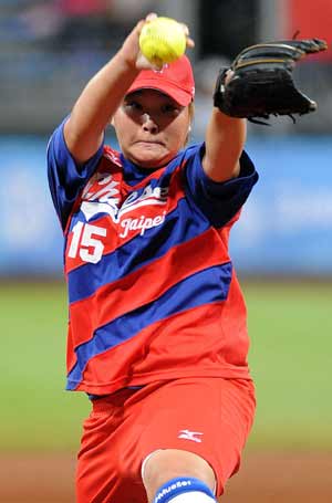 北京奧運女子壘球比賽中華臺北隊于14日晚間出戰(zhàn)委內(nèi)瑞拉隊,投手闕明慧擔(dān)任救援,成功封鎖對手打擊。(下圖)