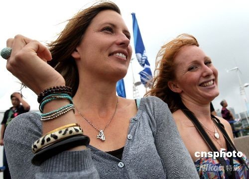 8月18日,北京2008奧運帆船比賽繼續(xù)在青島分賽場舉行,各國美女拉拉隊現(xiàn)場格外引人注目。中新社發(fā) 趙振清 攝