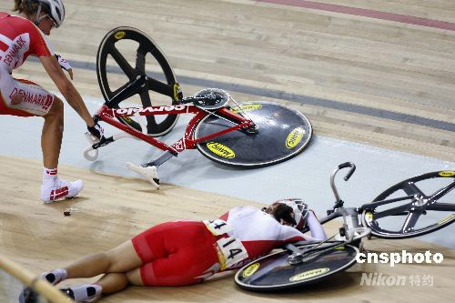 圖:場地自行車女子記分賽 車手相撞受傷