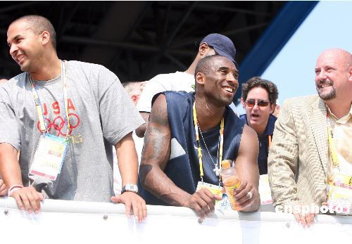 8月19日,美國籃球巨星科比前往奧運(yùn)沙灘排球現(xiàn)場,為美國選手加油。 中新社發(fā) 武仲林 攝