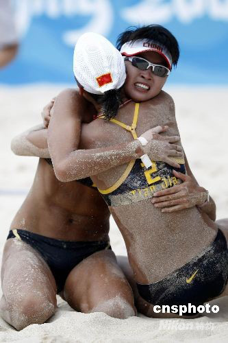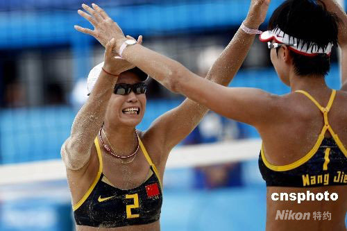 圖:中國"德比"田佳王潔勝出晉級沙排決賽(2)