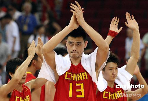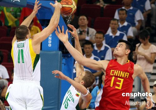 北京奧運(yùn)會(huì)男子籃球四分之一淘汰賽8月20日在五棵松籃球館開戰(zhàn),中國(guó)隊(duì)在與歐洲勁旅立陶宛隊(duì)的拼殺中終因?qū)嵙Σ粷?jì)以68比94告負(fù),無(wú)緣北京奧運(yùn)會(huì)四強(qiáng),立陶宛隊(duì)進(jìn)入奧運(yùn)會(huì)男籃四強(qiáng)。超級(jí)中鋒姚明上場(chǎng)33分鐘,砍下全隊(duì)最高的19分。 中新社發(fā) 任晨鳴 攝