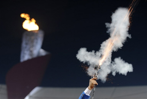 8月20日,北京奧運(yùn)會(huì)田徑比賽在國(guó)家體育場(chǎng)鳥巢繼續(xù)進(jìn)行。圖為發(fā)令槍響的瞬間。