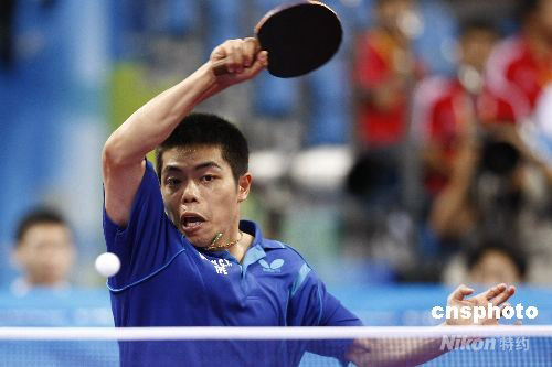 圖:乒乓球男單第三輪 新加坡選手淘汰莊智淵