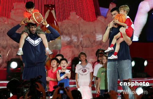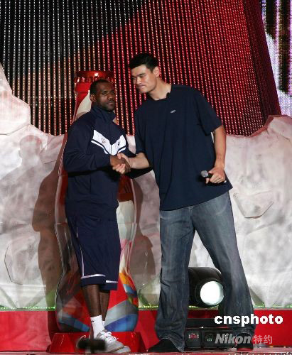 8月21日,中美兩大炙手可熱的籃球巨星姚明和詹姆斯亮相北京世貿(mào)天階奧運文化廣場,與民眾一同歡度奧運會的美好時光。 中新社發(fā) 富田 攝 [1] [2] [下一頁]