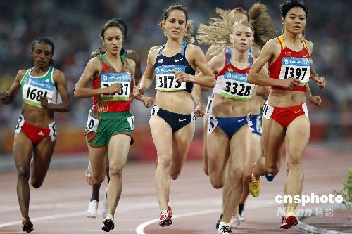 8月21日,北京奧運(yùn)會田徑比賽女子1500米預(yù)賽在國家體育場進(jìn)行,中國選手劉青(右一)位列小組第9名,無緣決賽。中新社發(fā) 盛佳鵬 攝