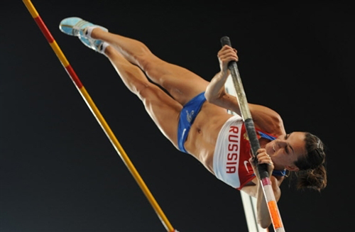 “撐桿跳女皇”伊辛巴耶娃撐桿跳高中施展“梯云縱”絕技,以5米05奪得冠軍,并打破世界紀(jì)錄。