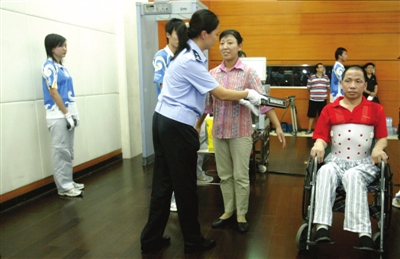 警方相關(guān)負責(zé)人表示,對于殘疾人,安檢員將優(yōu)先服務(wù)、專人引導(dǎo),確保殘疾人以最快速度通過安檢。拒絕接受安檢的殘疾人,按照相關(guān)規(guī)定,將被拒絕進入場館。