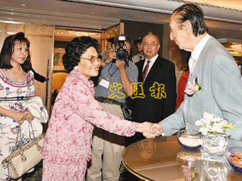 郭鄺肖卿和何鴻燊握手致意。(圖片來(lái)源:文匯報(bào))